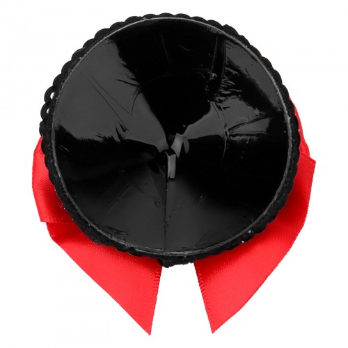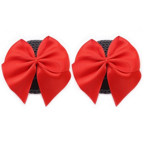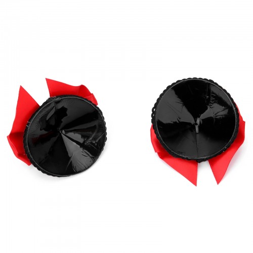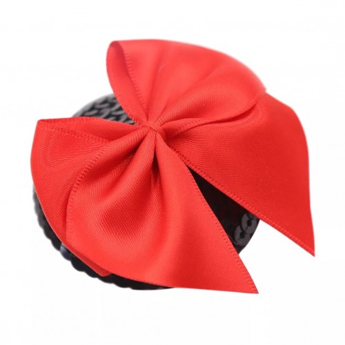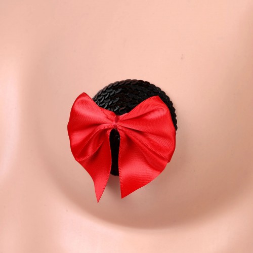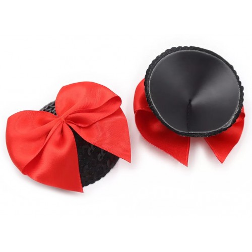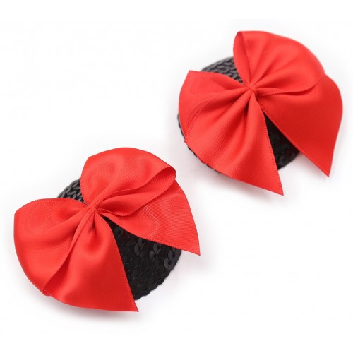 Пэстисы полностью покрыты черныйми пайетками, сверху украшены красным бантиком!