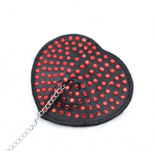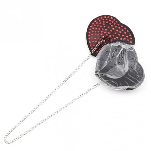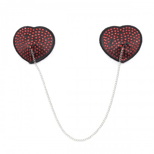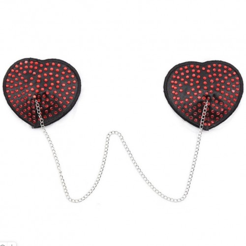 Черные пэстисы-сердечки с красными стразами и цепочкой