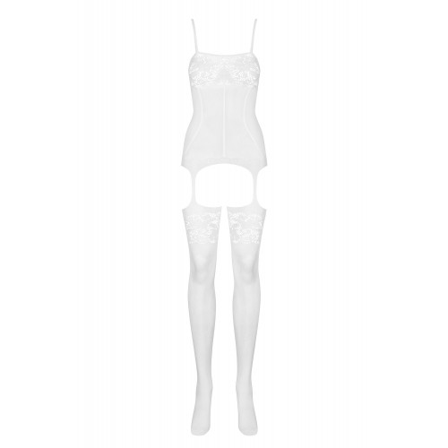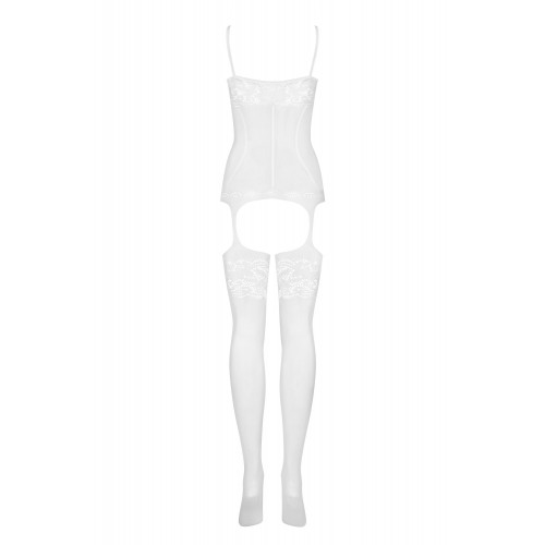 Сексуальный белый боди-комбинезон с нежными узорами S/L