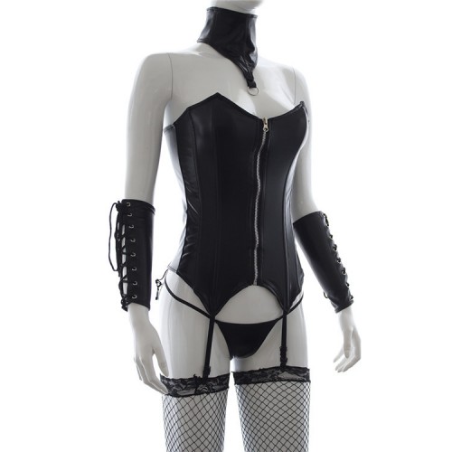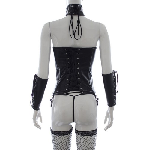 В комплекте: корсет, трусики, ошейник, манжеты.