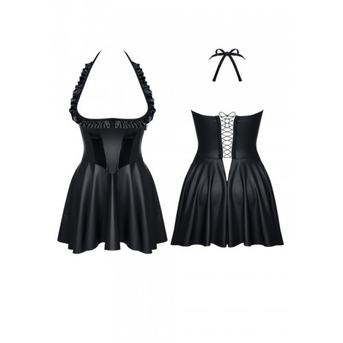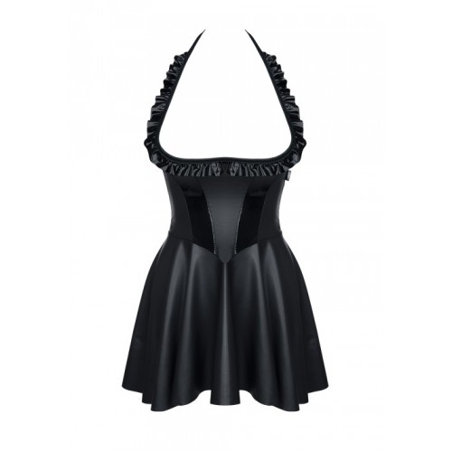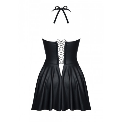Хотите создать чувственный образ и почеркнуть свой кокетливый нрав? Платье Jasmin идеально для этого подойдет. Спереди платье привлекает внимание открытой грудью, изящно подчеркнутой благодаря окантовке из ткани с эффектом «мокрой» кожи. Так же благодаря уникальному крою грудь выглядит более округлой и соблазнительной, а две вертикальные линии из глянцевой кожи визуально стройнят силуэт. Сзади платье крепится на завязках, что позволит его быстро надеть, а самое важное – быстро снять. А вертикальная шнуровка на спине добавит сексуальности и утонченности.