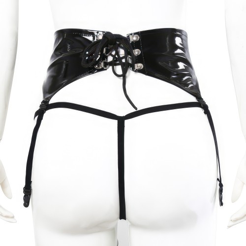 Широкий виниловый пояс для чулок. Пажи для чулок регулируются по длине, так же они съемные, что позволят использовать пояс и без чулок.
