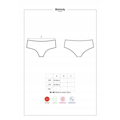 Изысканное и комфортное белье на каждый день. Трусики Behindy изготовлены из мягчайшего материала с кружевными узорами, красиво облегают, но не сдавливают тело.