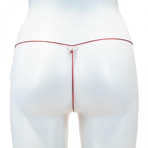 Красные стринги с бусинами и цепочками