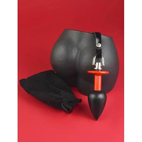Черно-красная анальная втулка с ремешком из натуральной кожи Sitabella