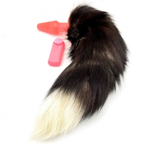 Розовая анальная втулка с вибрацией и бурым хвостиком 53 см
