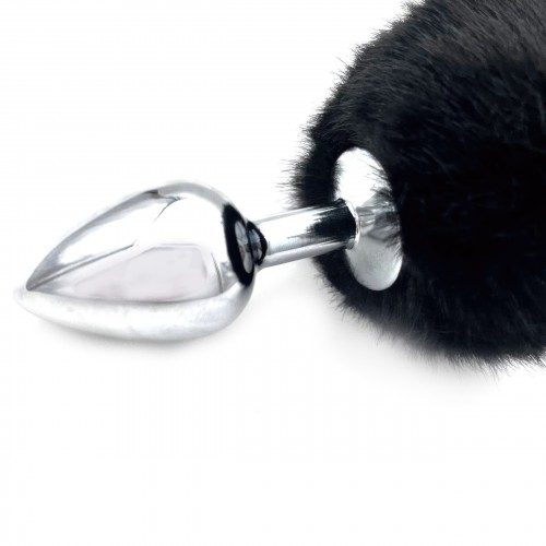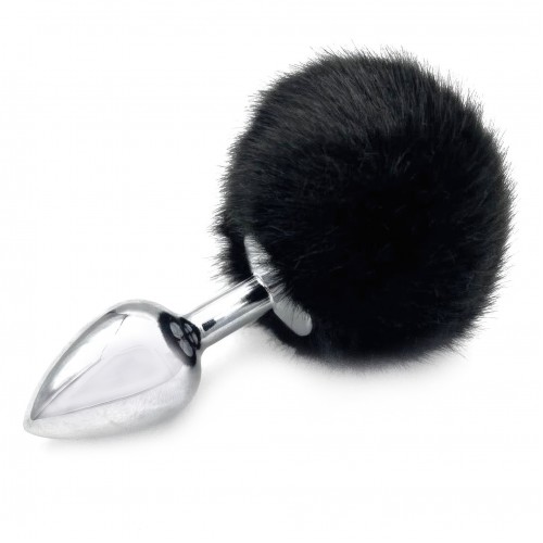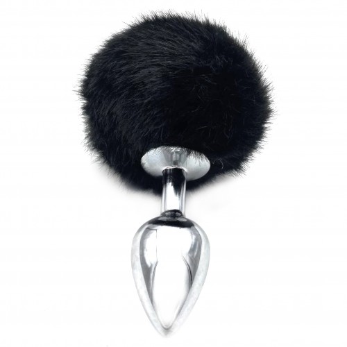Анальная пробка из металла с черным хвостиком кролика