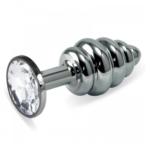 Анальная пробка из стали рифленая с прозрачным кристаллом Rosebud Classic S