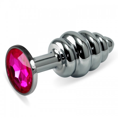 Анальная пробка из стали рифленая с кристаллом цвета фуксии Rosebud Classic S