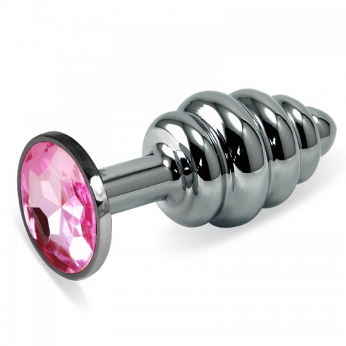 Анальная пробка из стали рифленая с розовым кристаллом Rosebud Classic S