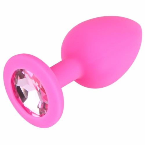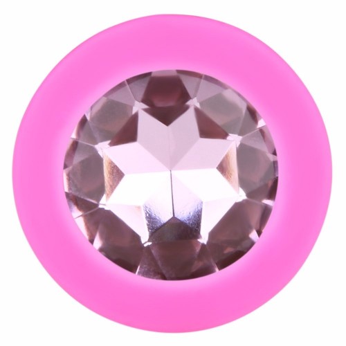 Анальная пробка с кристаллом изготовлена из медицинского силикона розового цвета