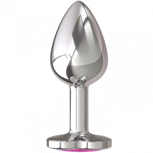 Металлическая анальная пробка с розовым камушком в виде сердечка M