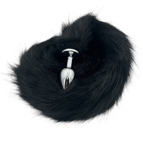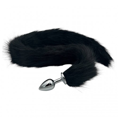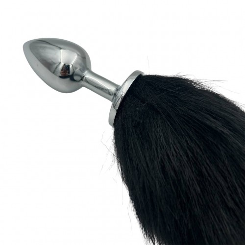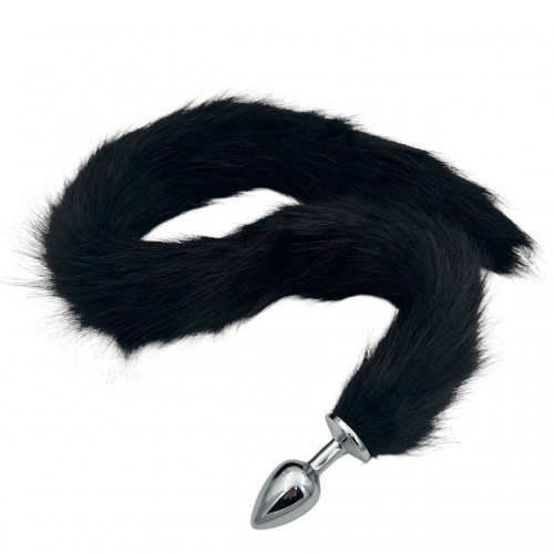 Металлическая анальная пробка S с длинным черным хвостиком 87 см