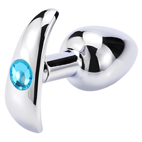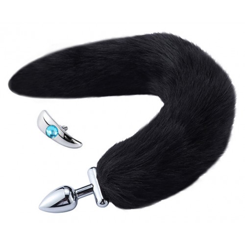 Металлическая анальная втулка со съемным черным хвостиком и пробкой с голубым кристаллом