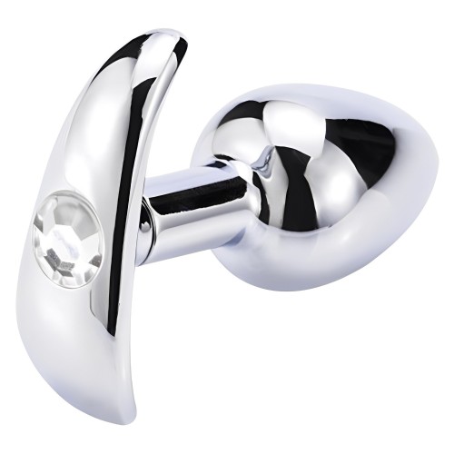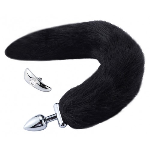 Металлическая анальная втулка со съемным черным хвостиком и пробкой с прозрачным кристаллом