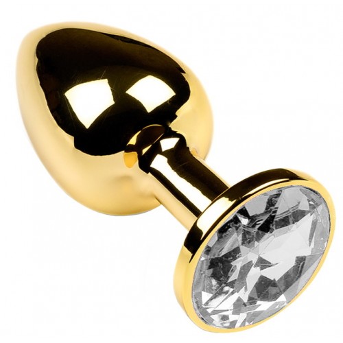 Золотая металлическая анальная пробка с прозрачным камушком L