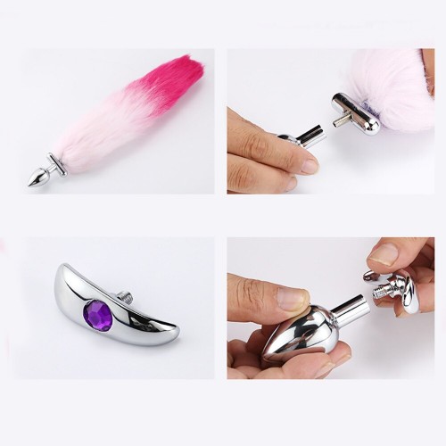Анальная пробка с серым съемным хвостиком изготовлена из медицинской стали. Используется в качестве интимного украшения. Не вызывает раздражения и индивидуальной непереносимости материала.