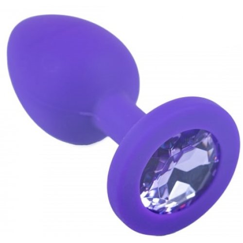 Анальная пробка с кристаллом изготовлена из медицинского силикона M пурпурная с розовым камушком