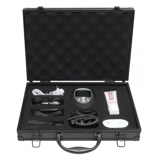Комплектация: 4 клейкие пластины с биполярными проводами, 2 электрических зажима для сосков, электрическая втулка, электрическое кольцо на пенис, гель для электро-секса 30 мл., цифровой пульт контроля мощности.