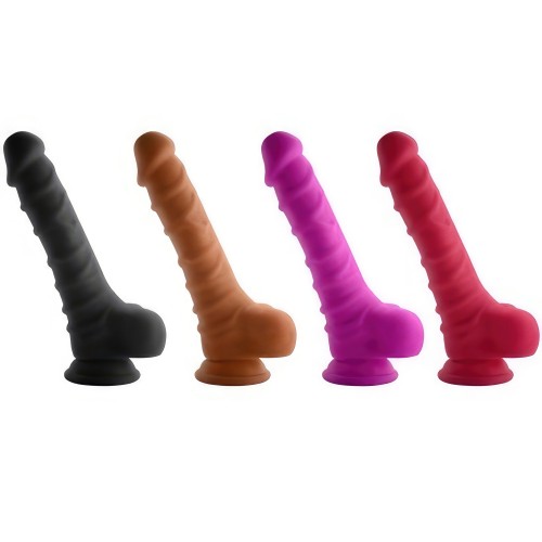 Реалистичный по форме, крепкий и упругий, с ярко выраженным рельефом, с мошонкой и раскрытой головкой...