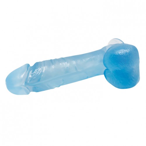 Фаллоимитатор с мошонкой и мощной присоской прозрачного цвета.