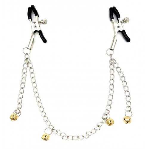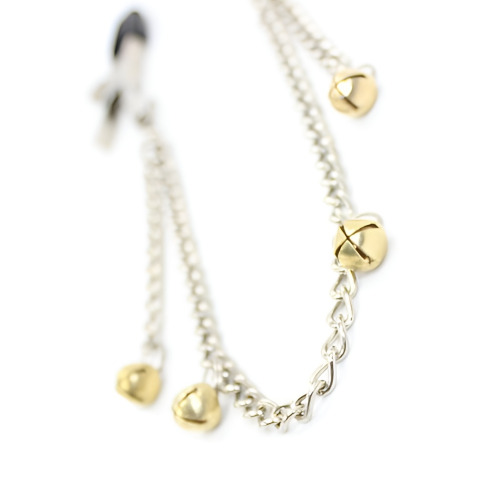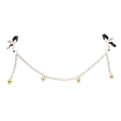 Зажимы для сосков на цепи с желтыми бубенчиками