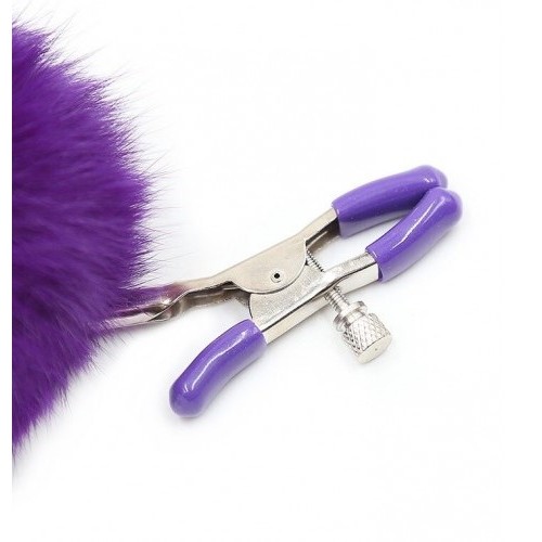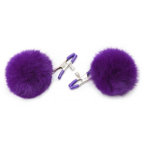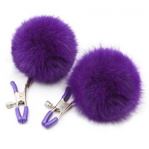 Зажимы на соски с фиолетовыми помпонами