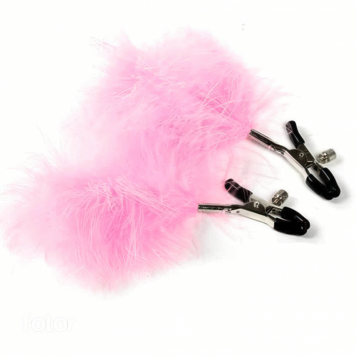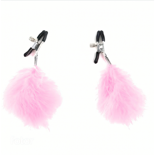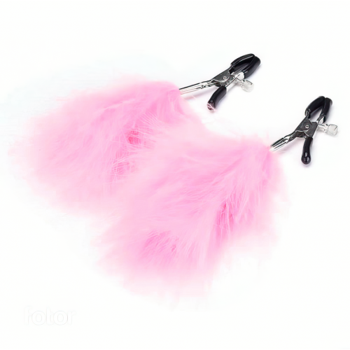 Зажимы с перьями стимулируют не только сжатием сосков, но и щекочут грудь.