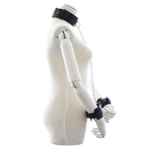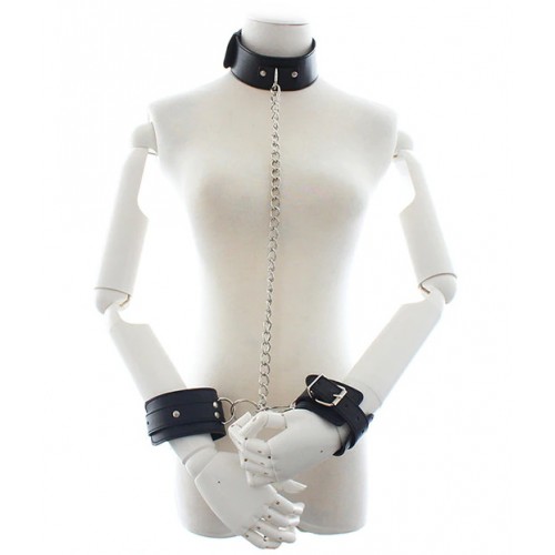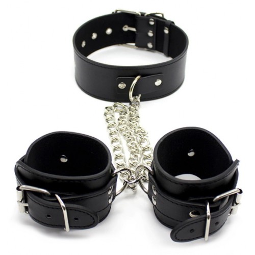 Бондаж чёрного цвета для рук с ошейником на цепочках