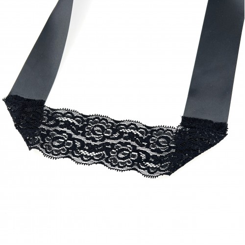 Маска изготовлена из нежного ажурного кружева черного цвета. Надевается при помощи мягкой атласной ленты.