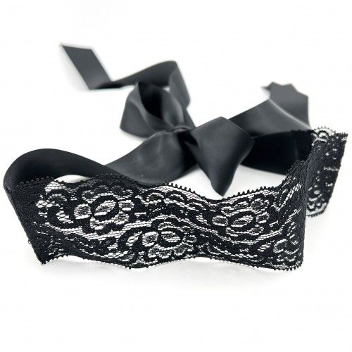 Ажурная черная маска с атласной лентой