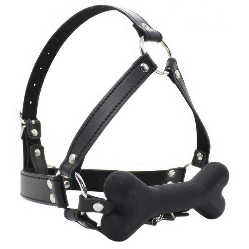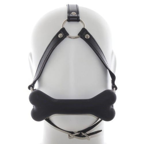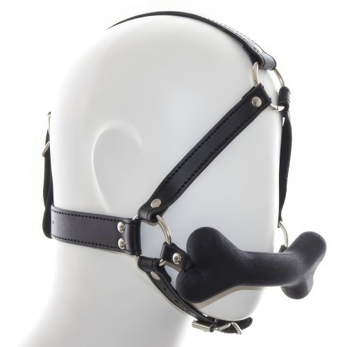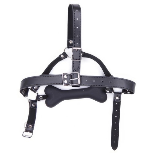 Данный бондаж выполнен максимально удобно, предназначен для БДСМ-игр, сделан с кляпом для рта в виде косточки, чтобы пользователь максимально не мог говорить, либо двигать челюстью.