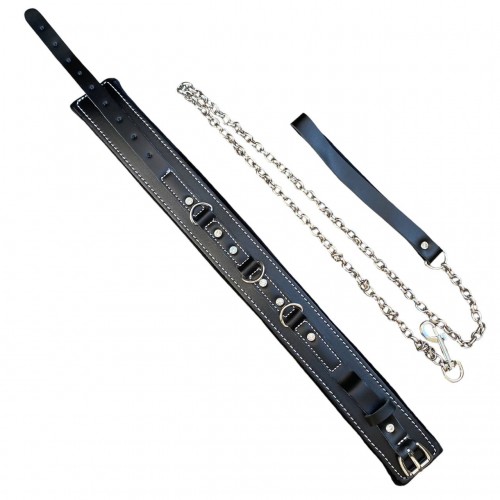 Металлическая фурнитура обеспечивает достаточно качественную фиксацию поводка, размер ошейника широко регулируется при помощи пряжки, что позволяет подобрать комфортный обхват как на женскую, так и на мужскую шею.