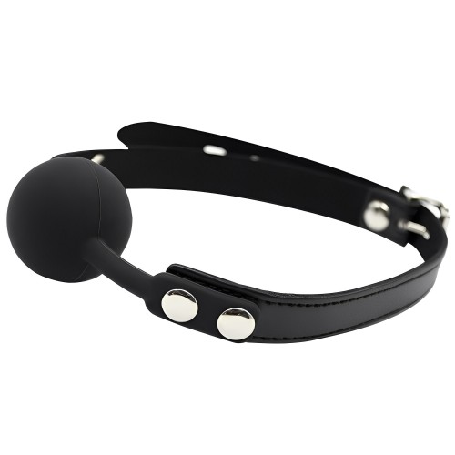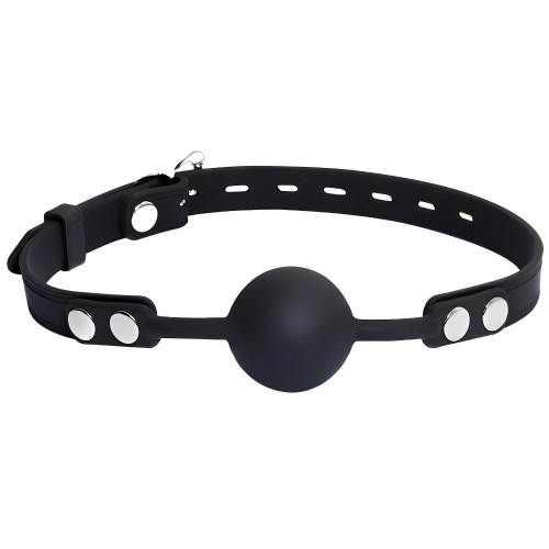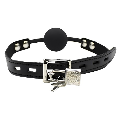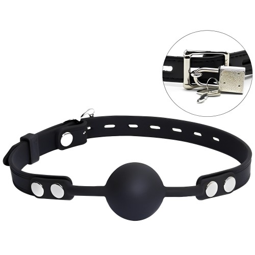 Силиконовый кляп-шар черного цвета на ремне с замочком
