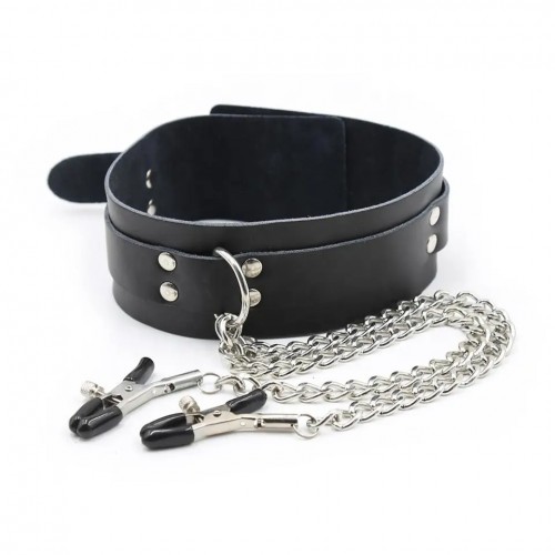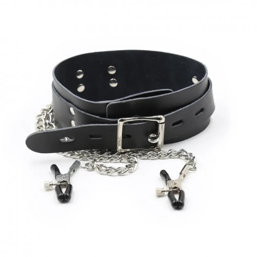 Размеры: ширина ошейника 4 см, по обхвату регулируется от 32 до 45 см, длина цепочек до зажимов 33 см