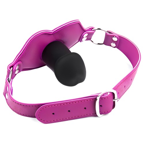 Силиконовый кляп-фаллос на розовом ремне в виде губ