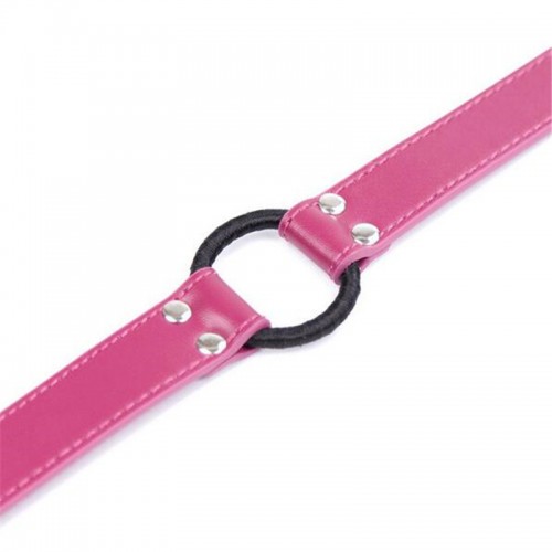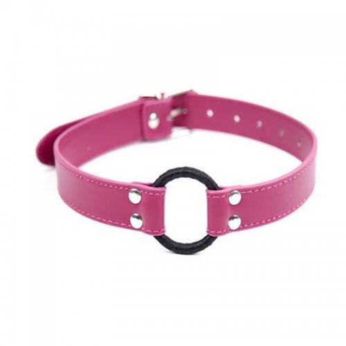 Кольцо держится на кожаных ремешках, которые крепятся на затылке, фиксируя кляп.
