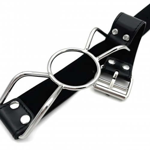 Этот оригинальный атрибут несет в себе не только визуальную нагрузку. Металлическое кольцо фиксатора дарит дополнительные ощущения во время орального секса с подчинившимся партнером.