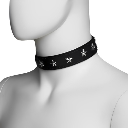 Оригинальный черный ошейник, декорированный металлическими звёздами.