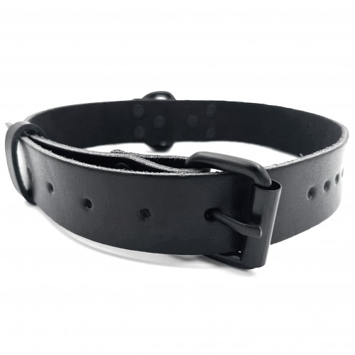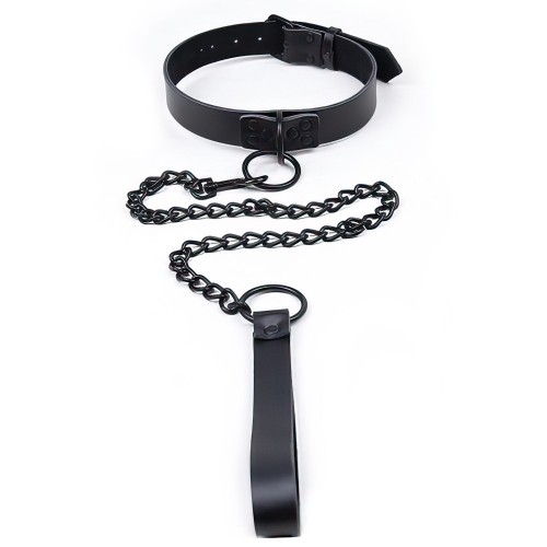 Черный БДСМ ошейник из натуральной кожи с черным поводком