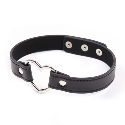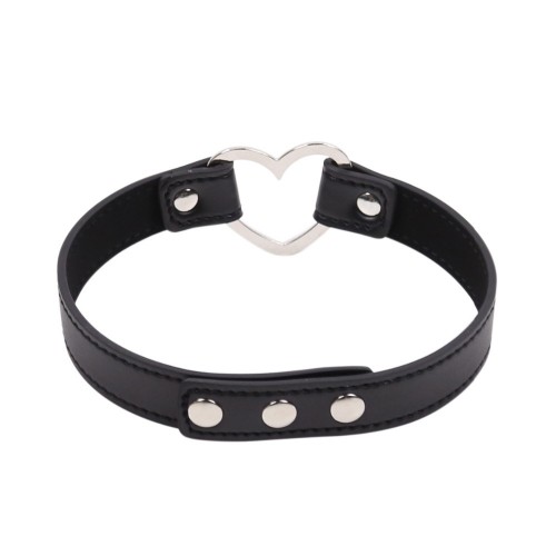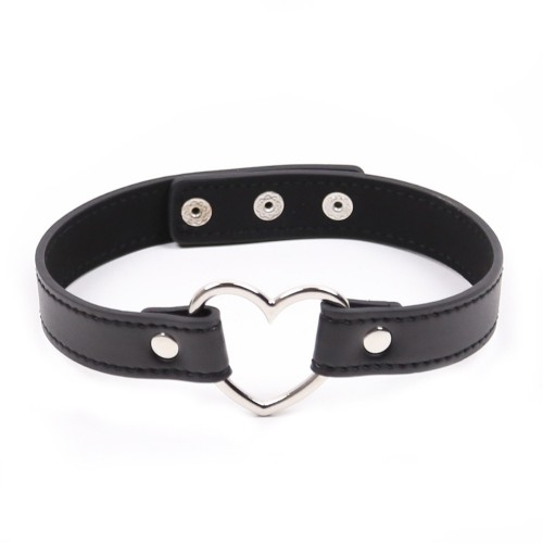 Оригинальный черный ошейник, декорированный металлическим сердцем.
