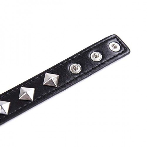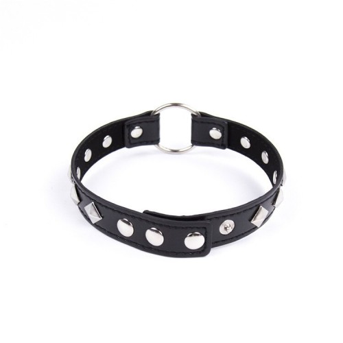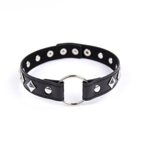 Эстетичный ошейник, нежный и жесткий одновременно, прекрасный вариант для тех, кто решил попробовать игру в подчинения.Оригинальный черный ошейник, декорированный металлическим кольцом и заклепками в форме ромбов. Крепление в виде заклепок.