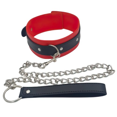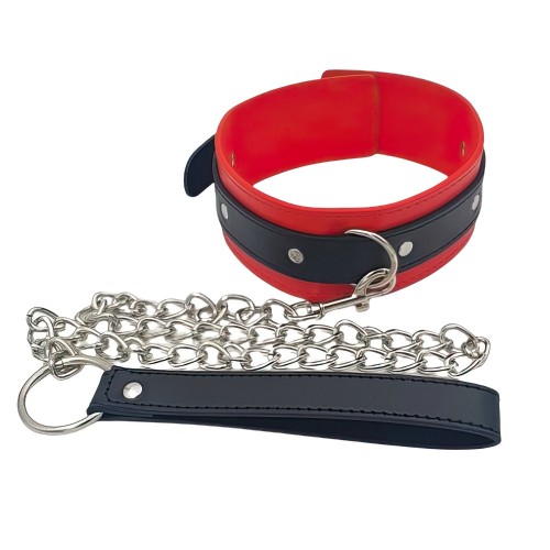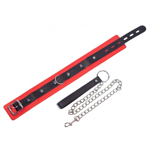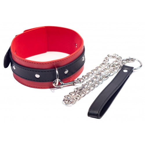 Черно-красный БДСМ ошейник с поводком