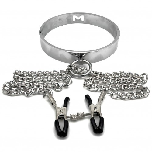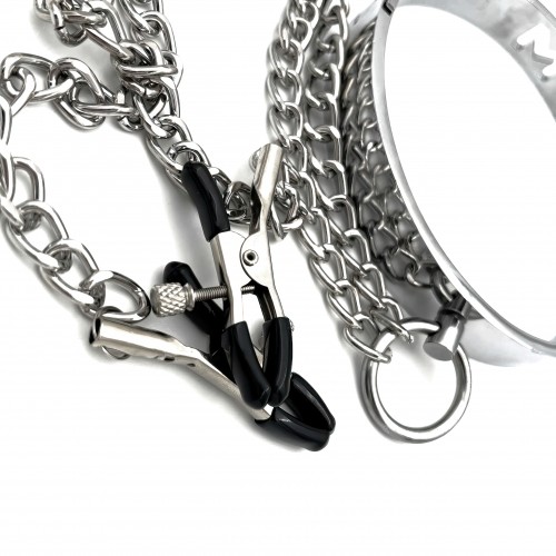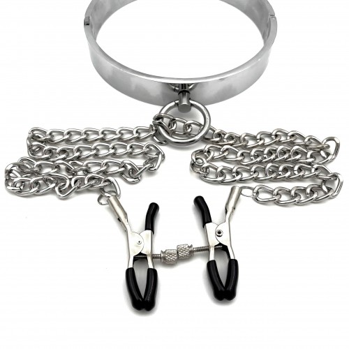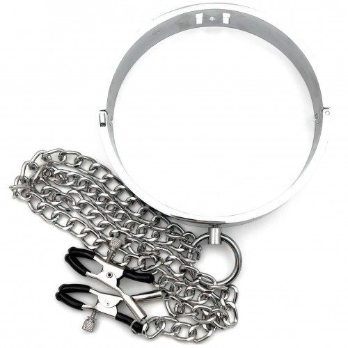 Зажимы на кольце отсоединятся от ошейника, что позволяет использовать ошейник и зажимы как отдельный БДСМ- аксессуар.