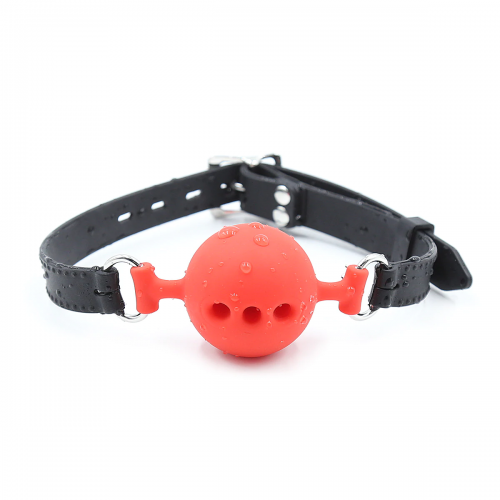 Кляп выполнен в виде силиконового шарика красного цвета с отверстиями.