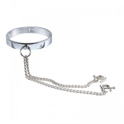 Кольцо для цепи откручивается. Ошейник декорирован прорезью в форме буквы М.