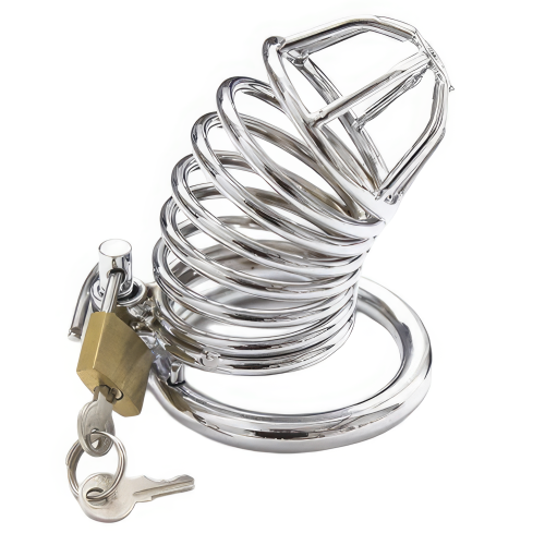 Комплектация: клетка для пениса, запорное кольцо, замок с двумя ключами.