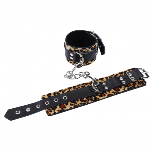 Леопардовые наручники с серебряной цепочкой