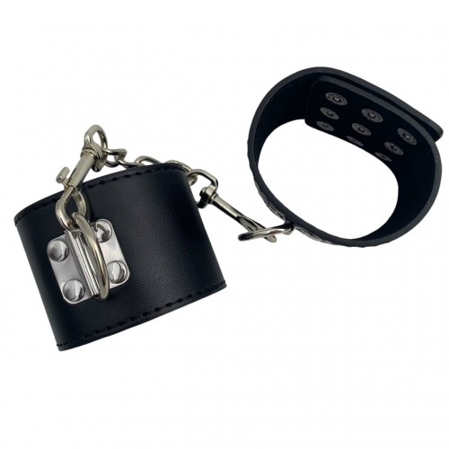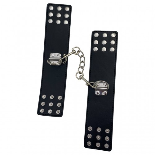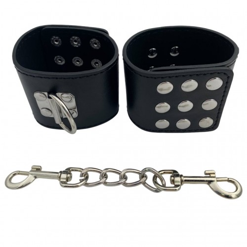 Размеры: ширина наручников - 6 см, подойдут на обхват руки 15 - 20 см, длина цепочки с карабинами - 15 см.