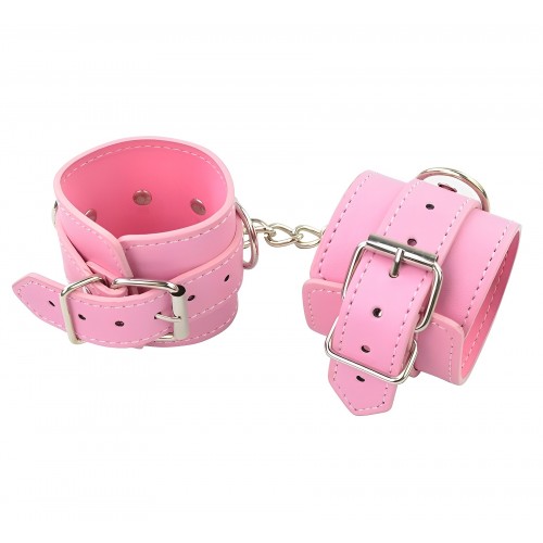Наручники изготовлены из высококачественного материала. Выполнены в нежно-розовом цвете, соединены между собой цепочкой на карабинах.